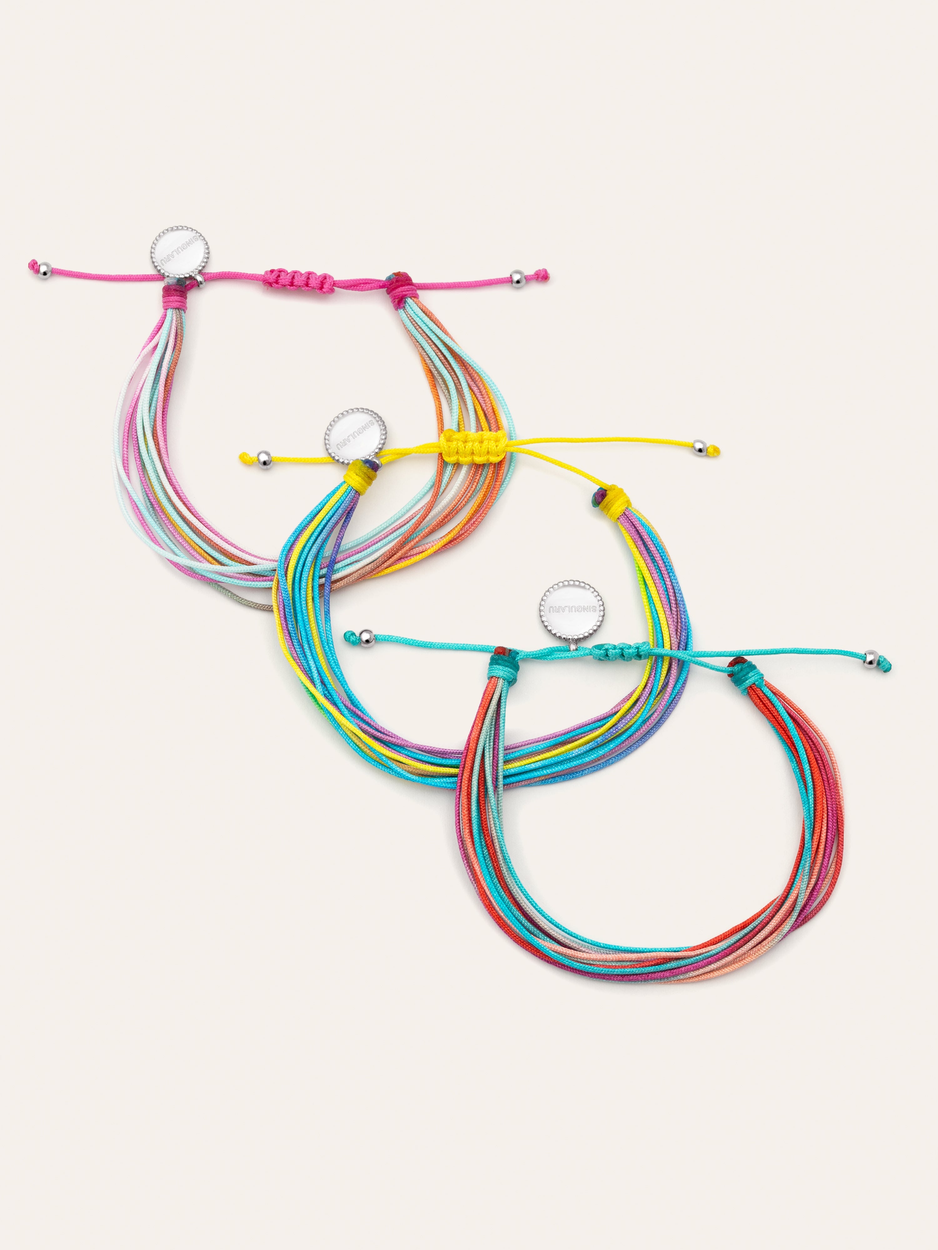 El Pack 3 Pulseras Color Rainbow es perfecto para compartir con amigas 🌈 Unas pulseras de hilo super en tendencia para esta temporada. Tu joya de acero inoxidable resistente al agua, perfecta para verano 🌊