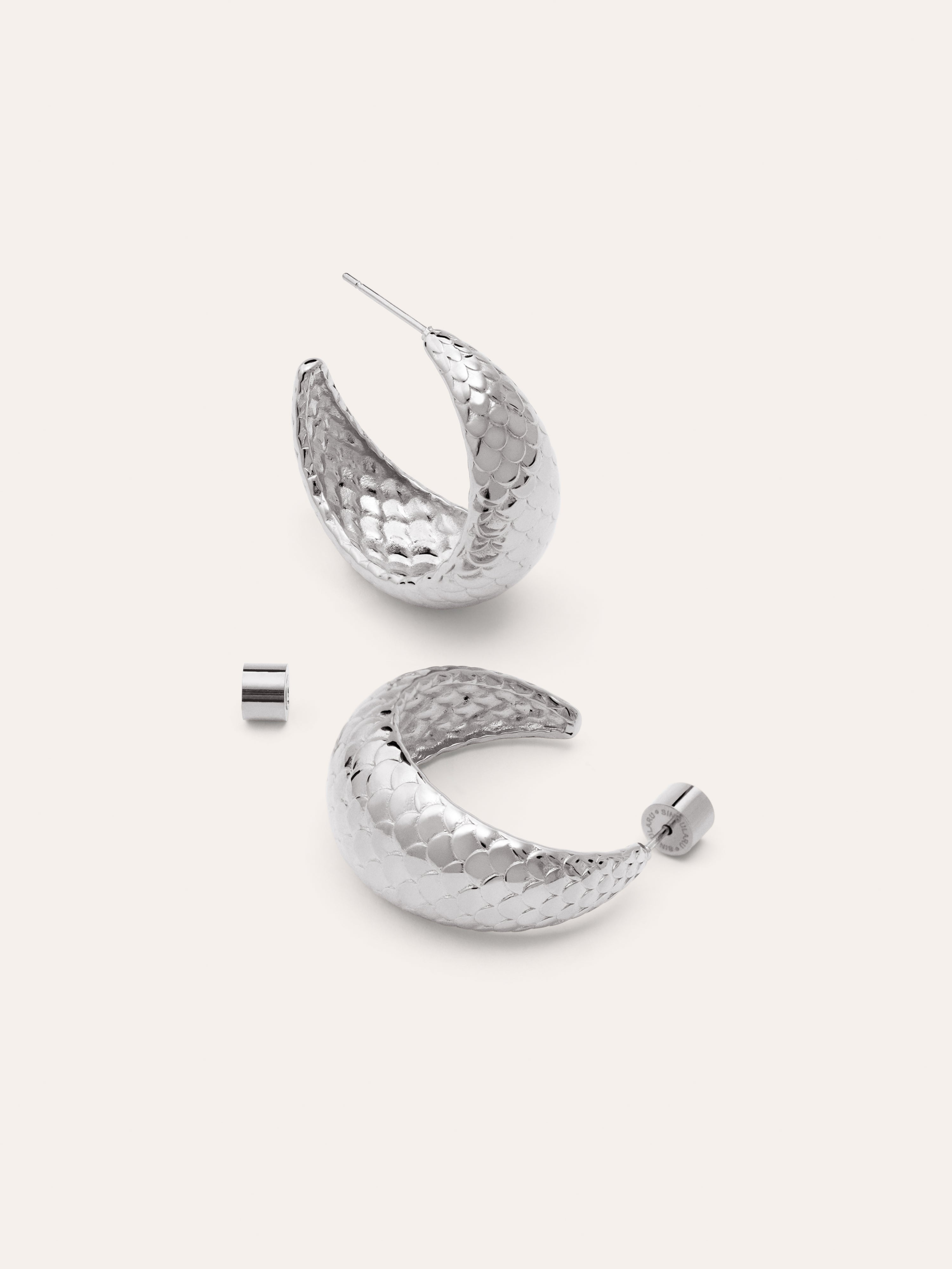 Los Pendientes Aro Mermaid de acero son unos aros en forma de media luna, con textura escamada. Aunque su forma sea gruesa, son super ligeros. ✨🧜¡La tendencia de las joyas de sierna ha vuelto!