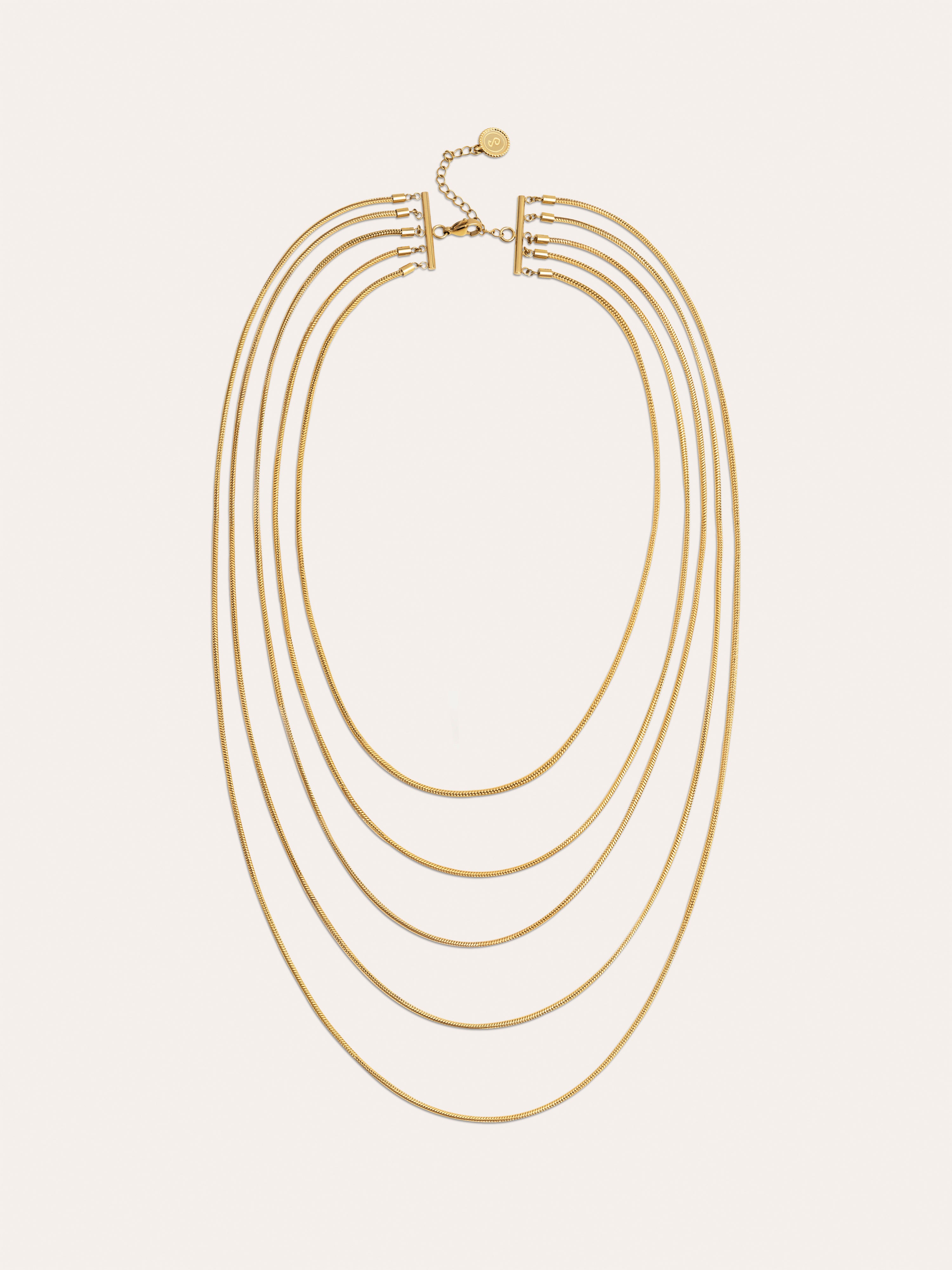 El collar cleopatra es una gargantilla de bañado en oro de muchas cadenas de acero que te apaña cualquier look. Un collar maxi ideal para salir de fiesta o eventos especiales. ✨