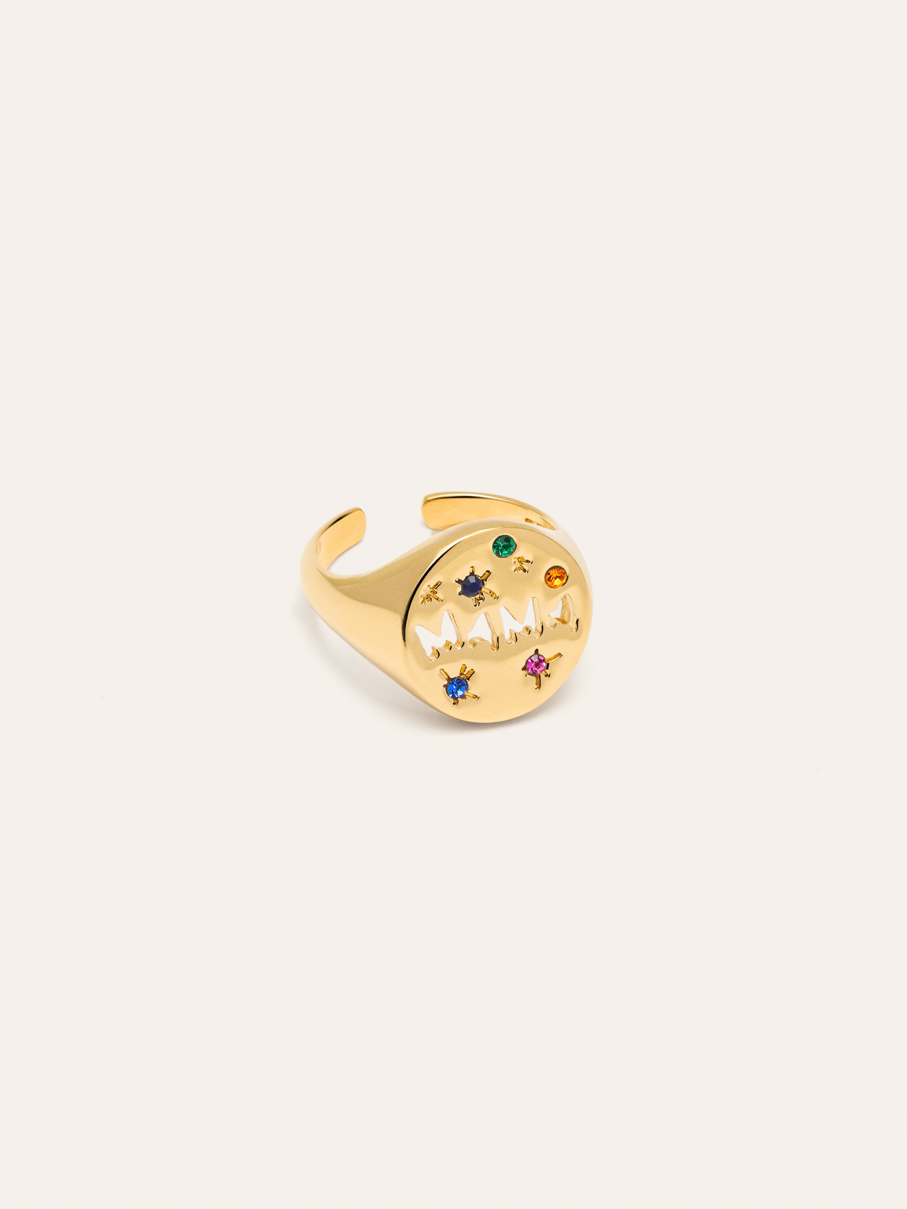 El anillo mamá es perfecto para regalar. 💘 Un anillo con circonitas de colores y la palabra más bonita: mamá. Esta joya es ideal para regalar para el día de la madre.