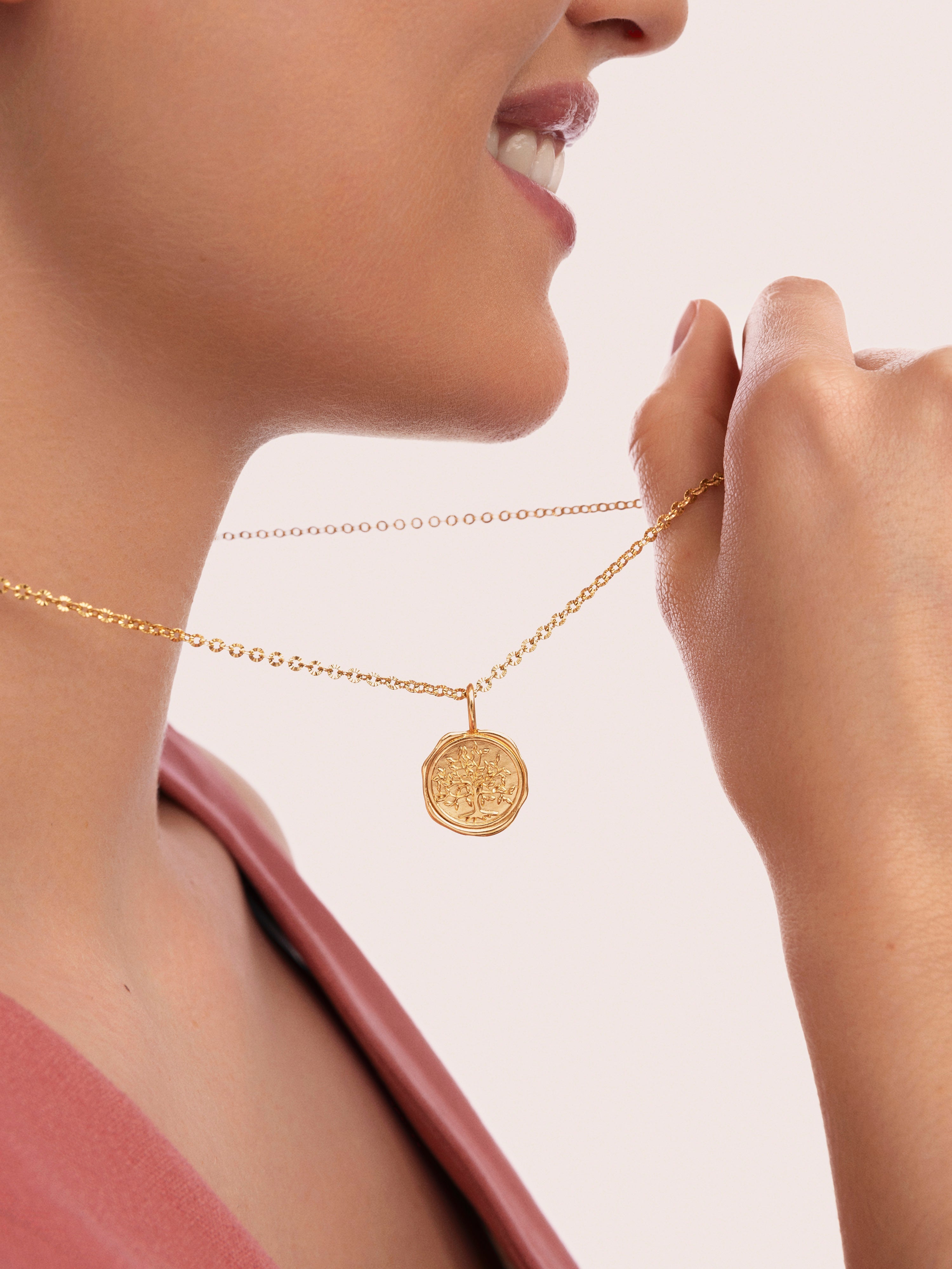 El charm Árbol de la vida es un colgante super especial lleno de simbolismo. Con forma circular y un diseño en relieve es un complemento elegante y significativo para añadir a tus cadenas. 🍃