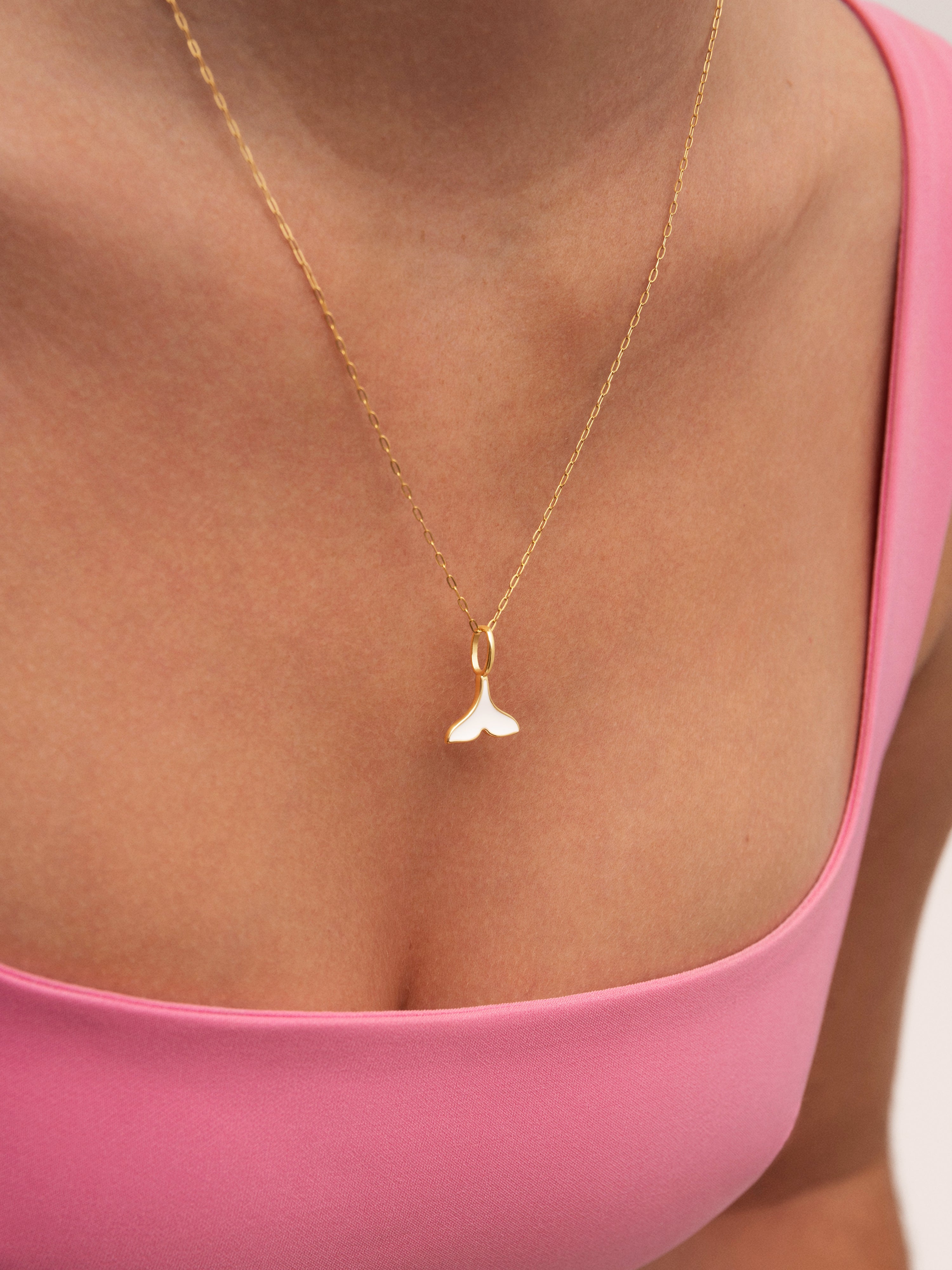 El charm Sirena es un colgante con forma de cola de sirena con un acabado de nácar brillante. ✨ Llévalo siempre con tus collares este verano. 🧜¡La tendencia de las joyas de sirena ha llegado!