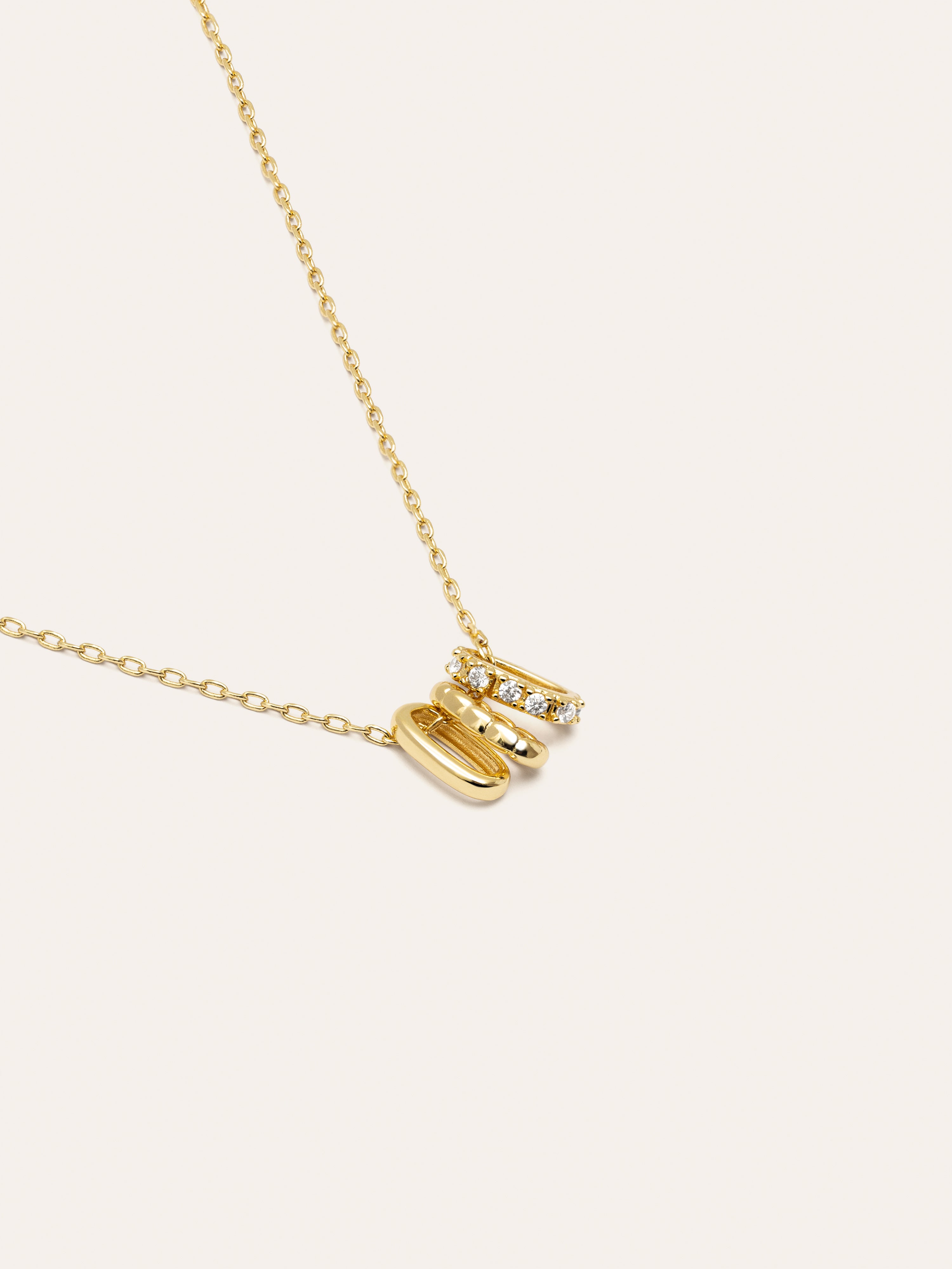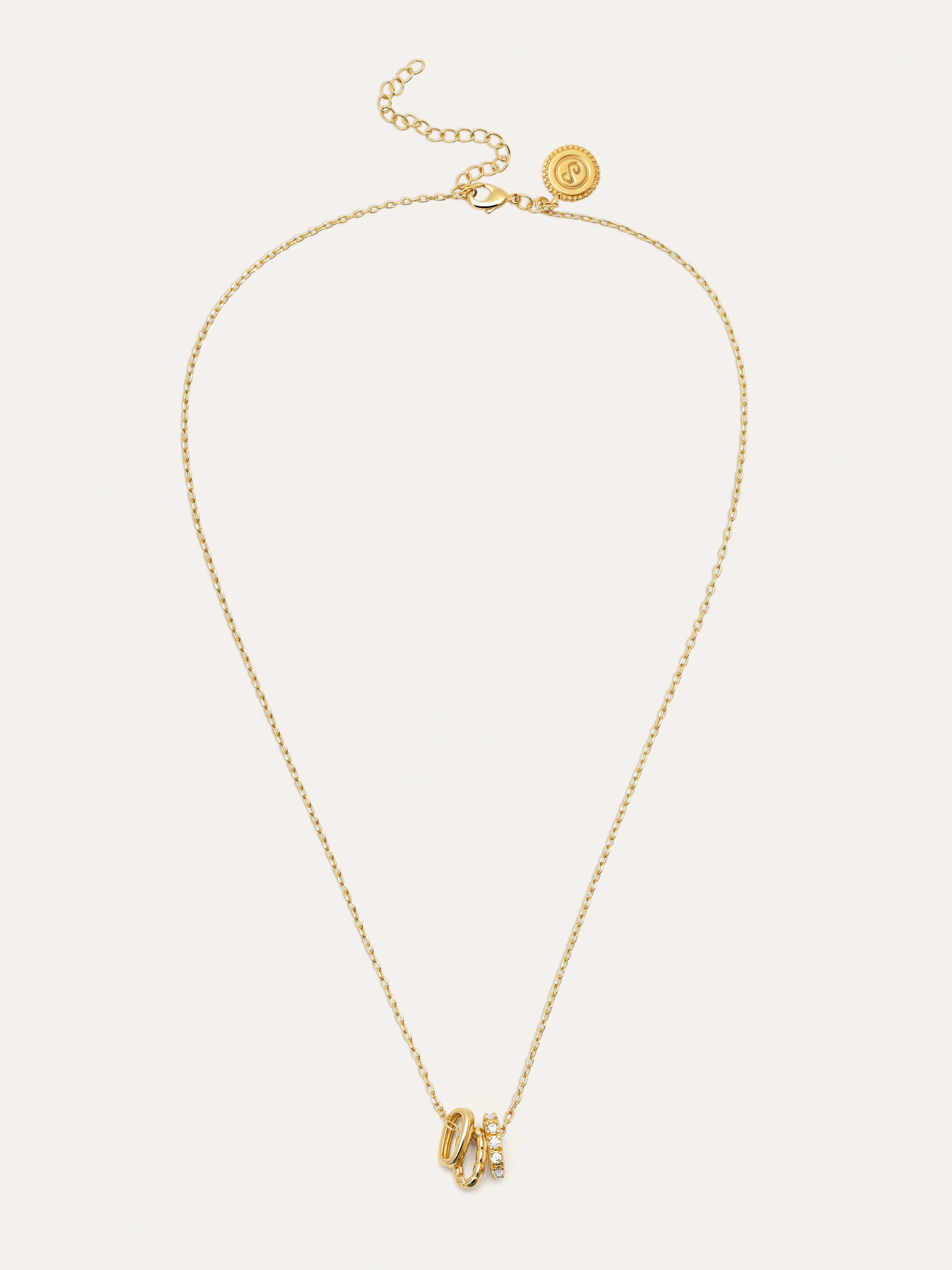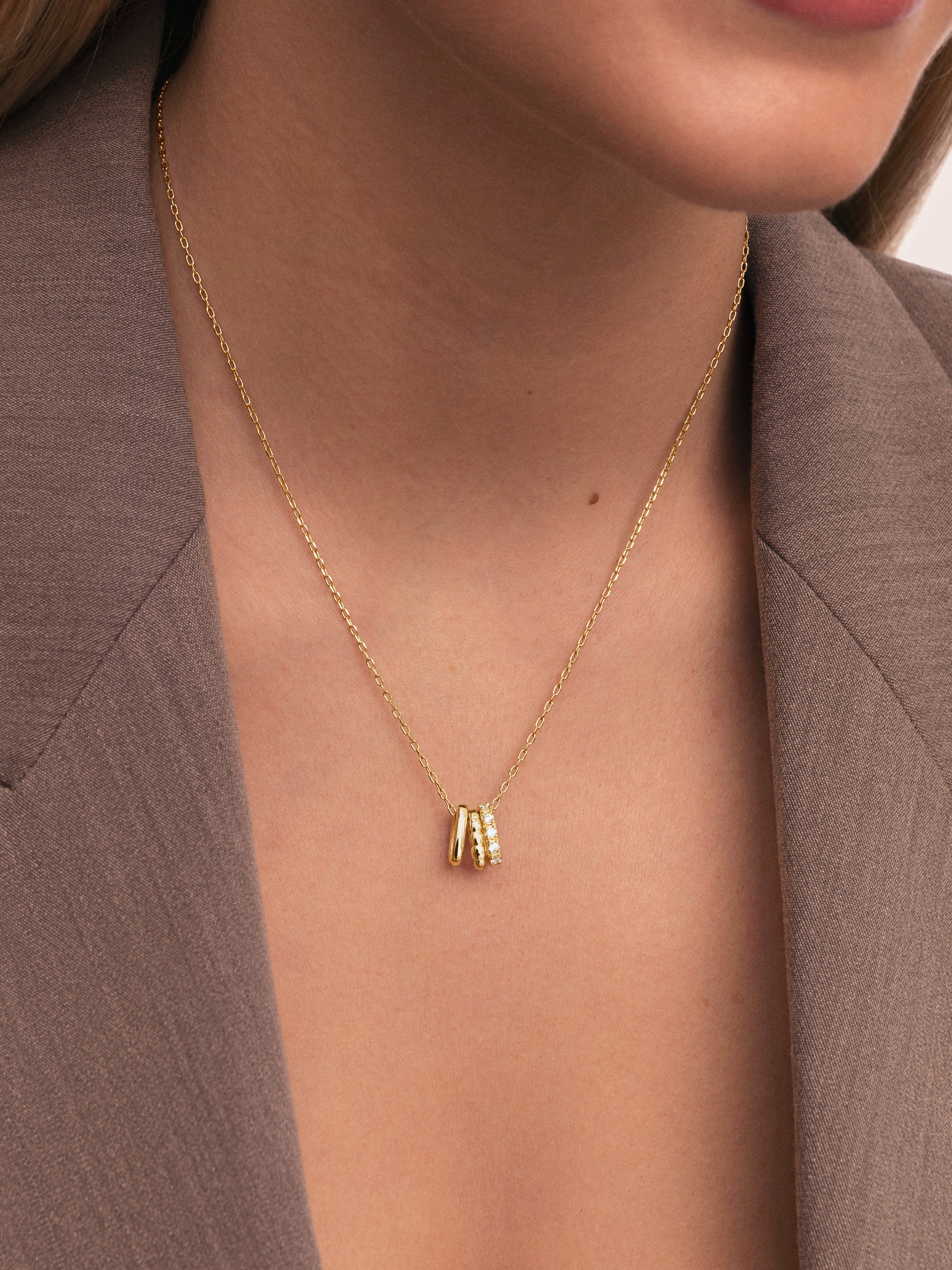 El collar family está lleno de simbolismo. Una cadena con tres eslabones entrelazados. Cada colgante tiene un diseño diferente: uno liso y pulido, otro con textura y el tercero con con pequeñas circonitas. Esta joya es perfecta para regalar. ✨