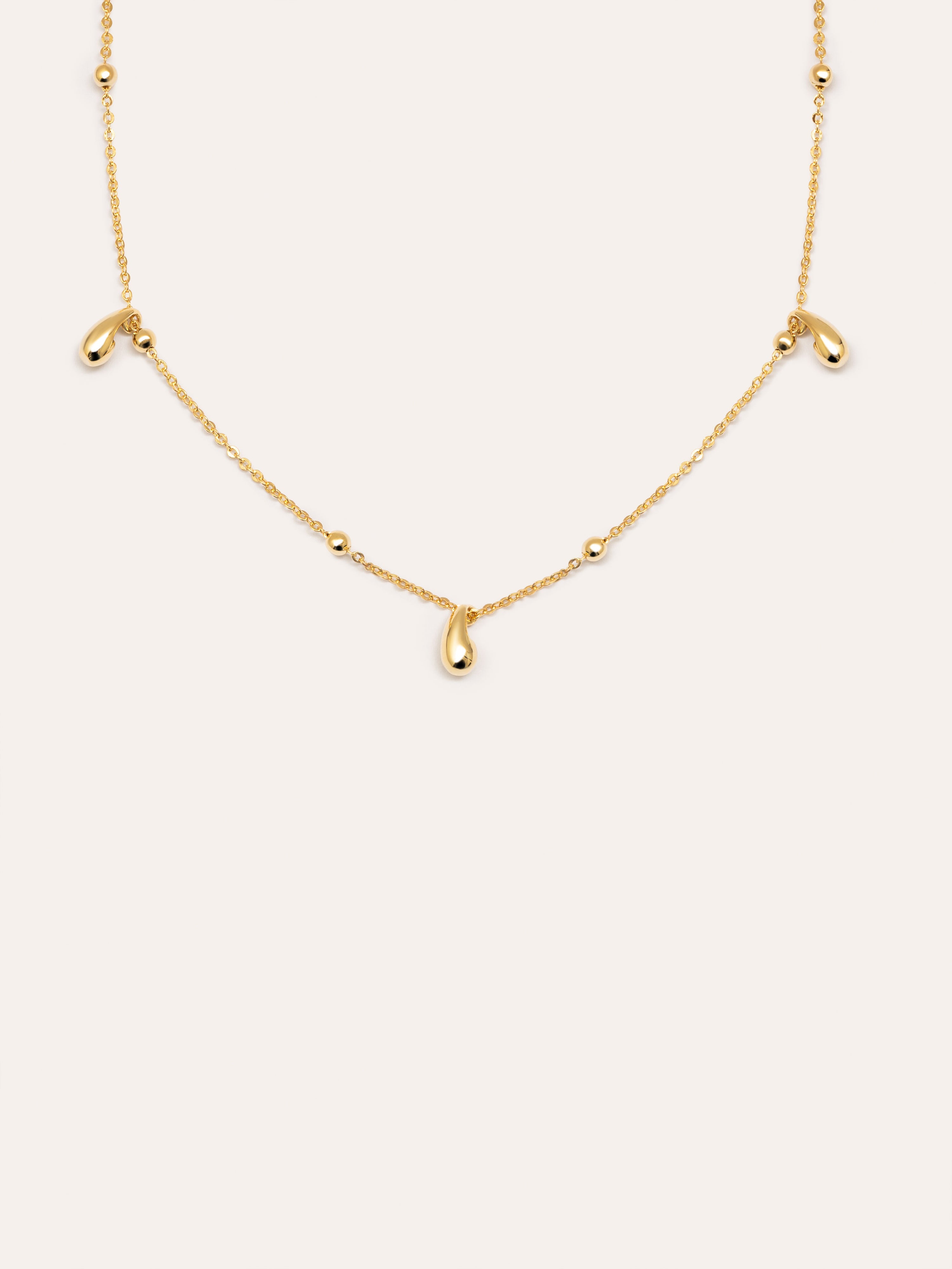 El collar Gotas y Dots es un colgante bañado en Oro de 18kt que combina cuentas en forma de gotas con mini dots. Un collar perfecto para practicar el arte del layering. 💧