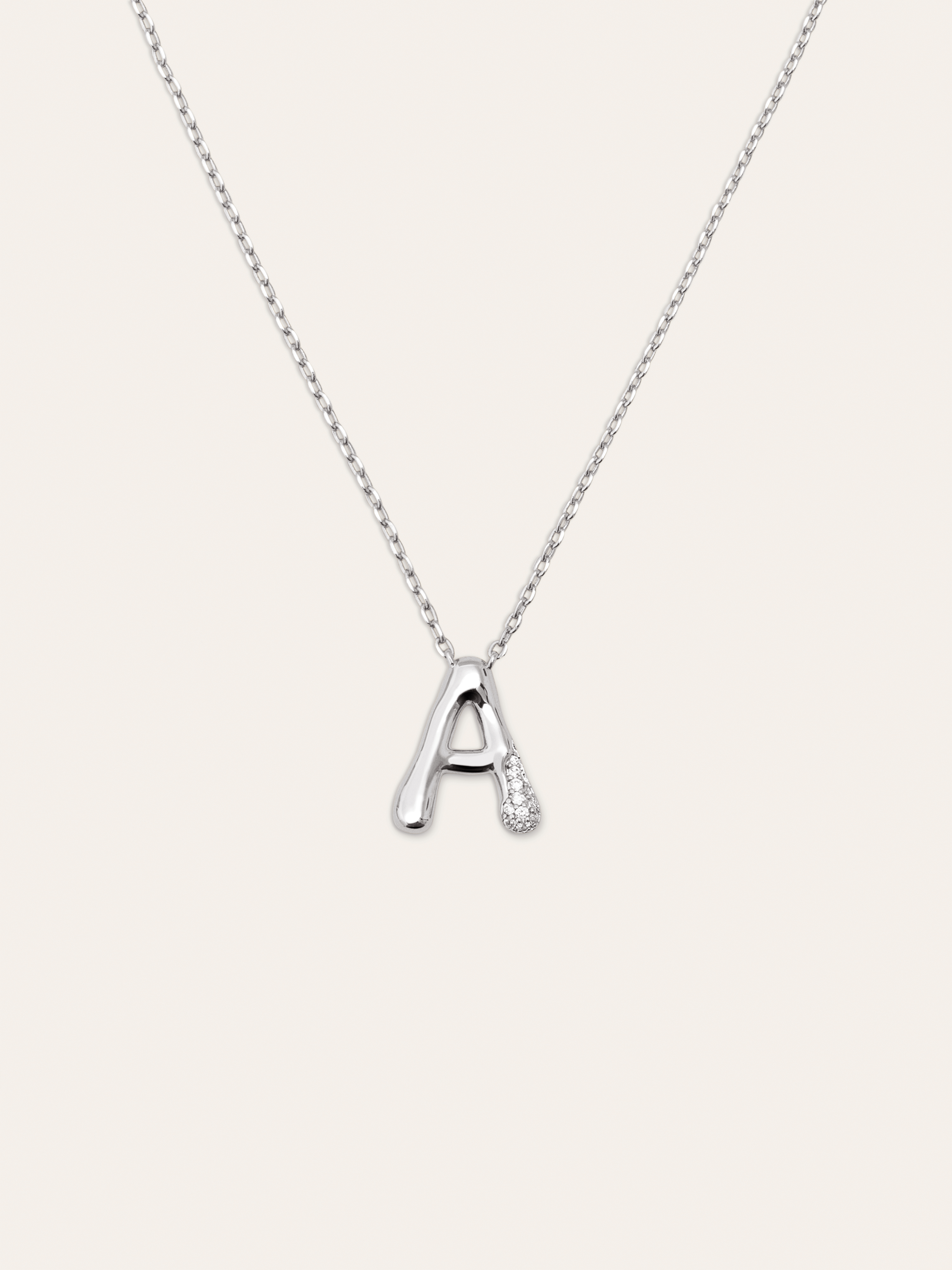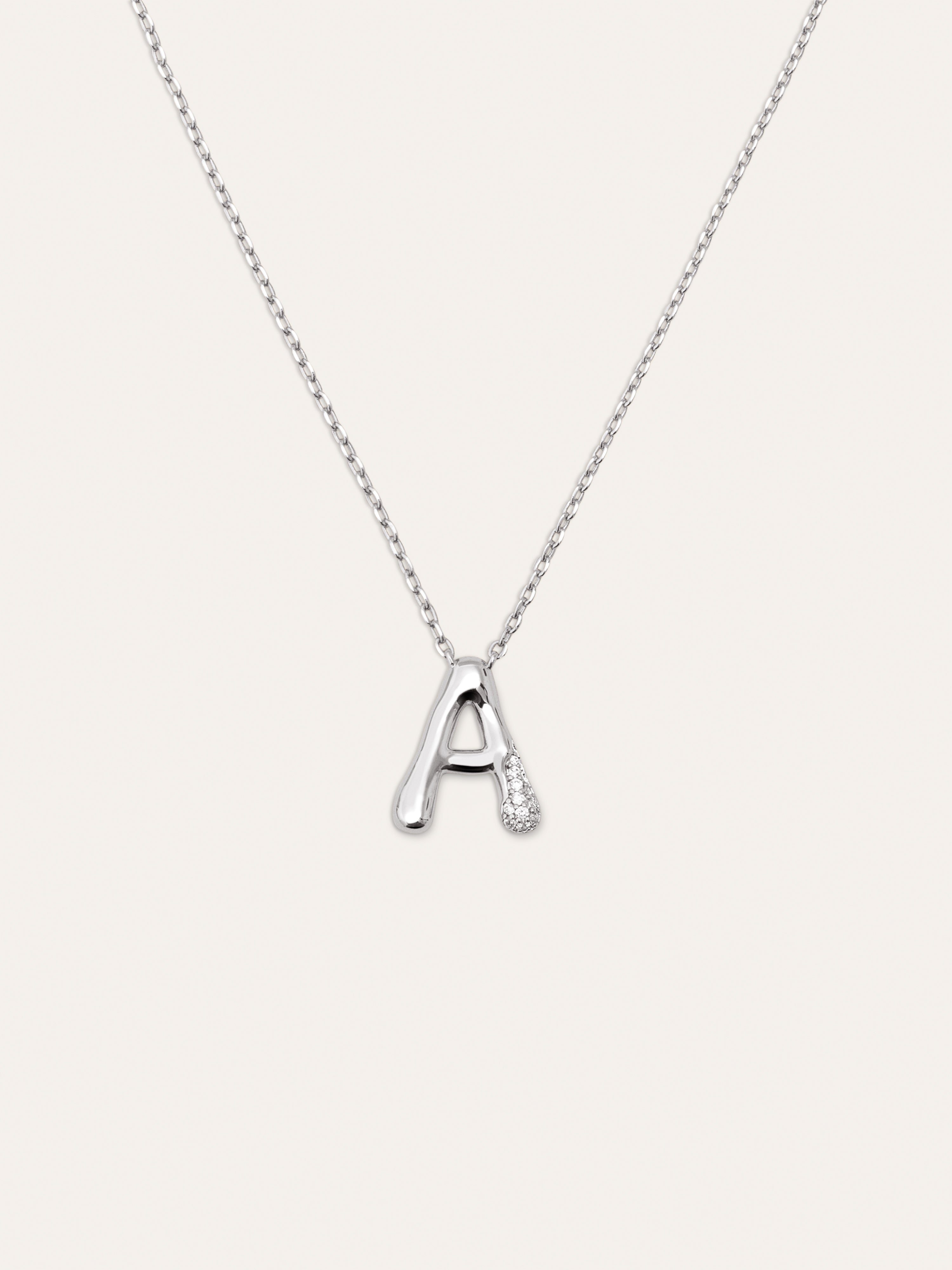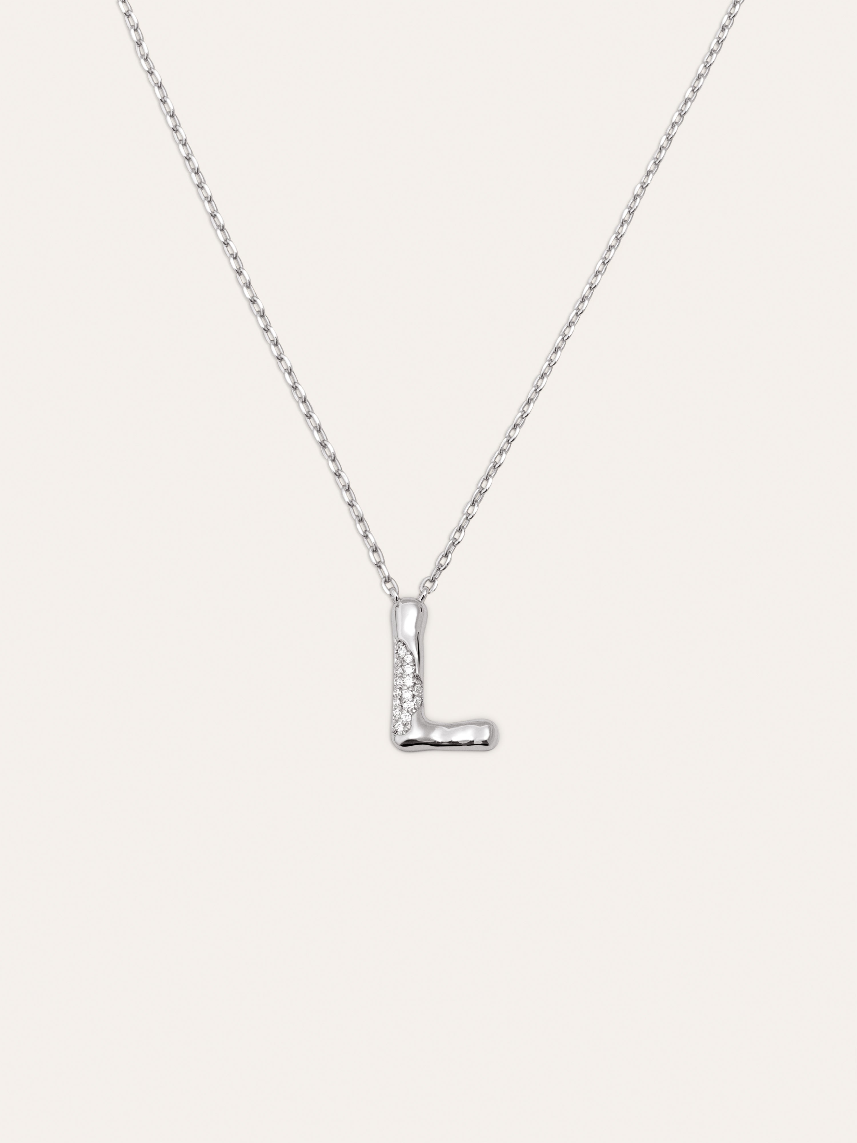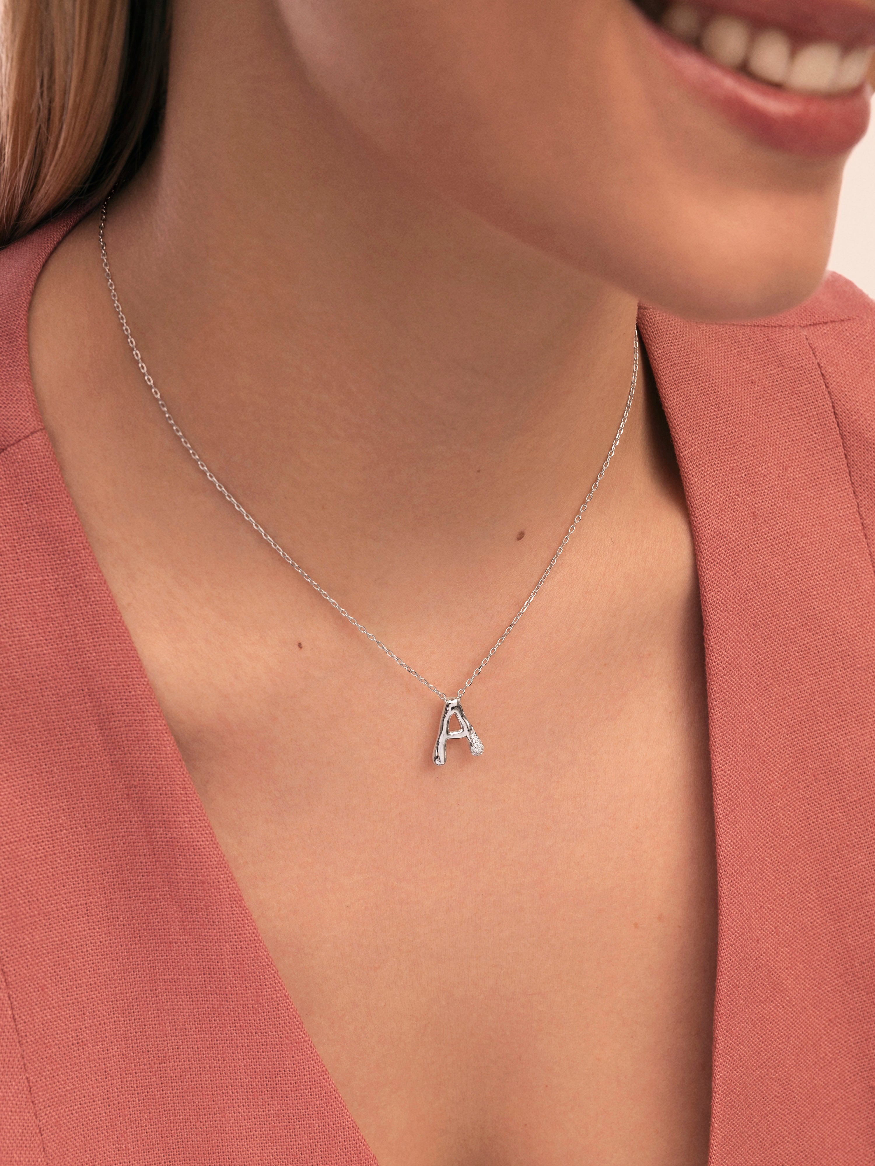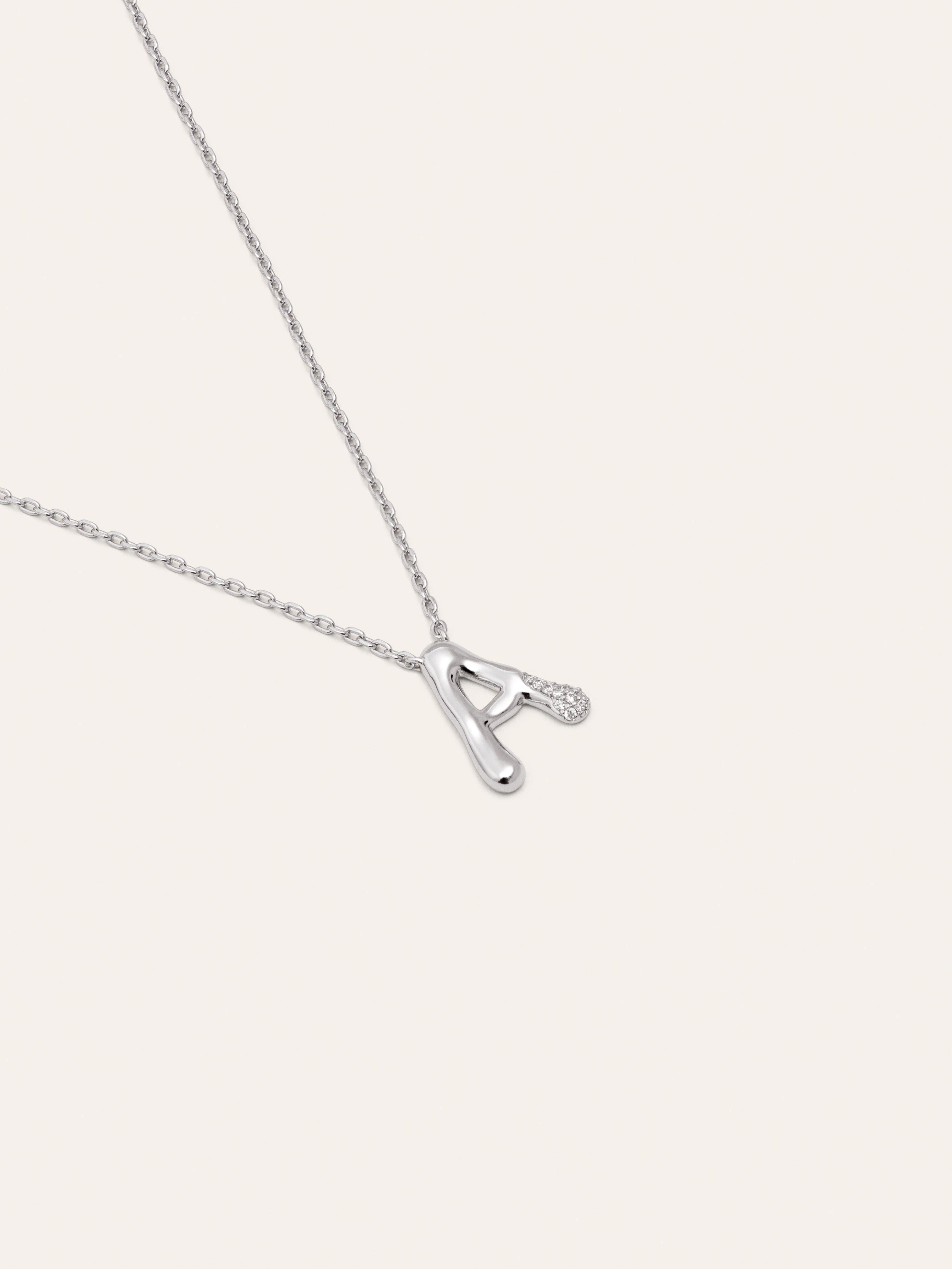 El Collar Personalizado Letter Brillante es el colgante más especial. ✨ Una cadena con un charm con volumen y circonitas brillantes. Esta joya es perfecta para regalar a tu persona especial.