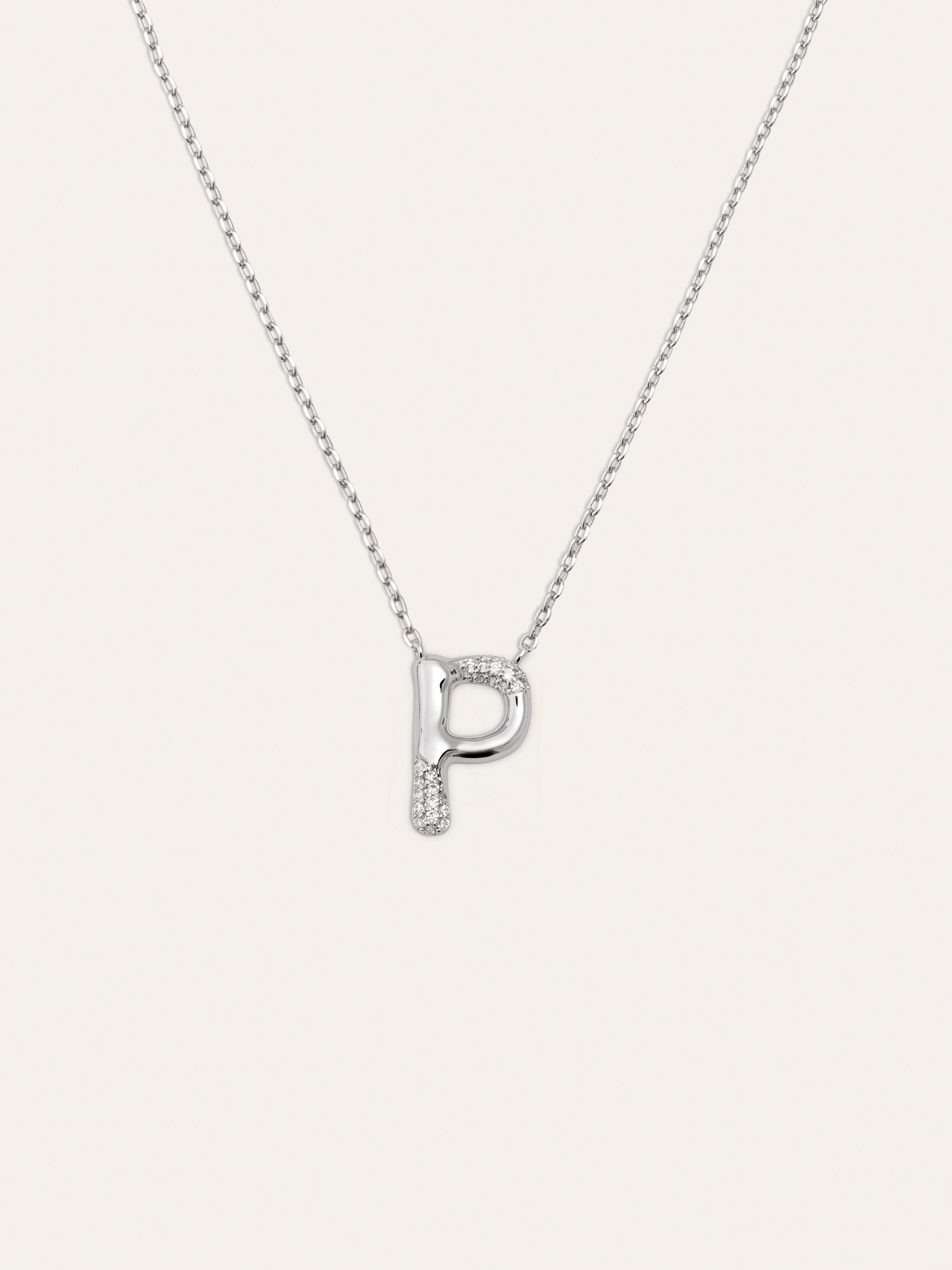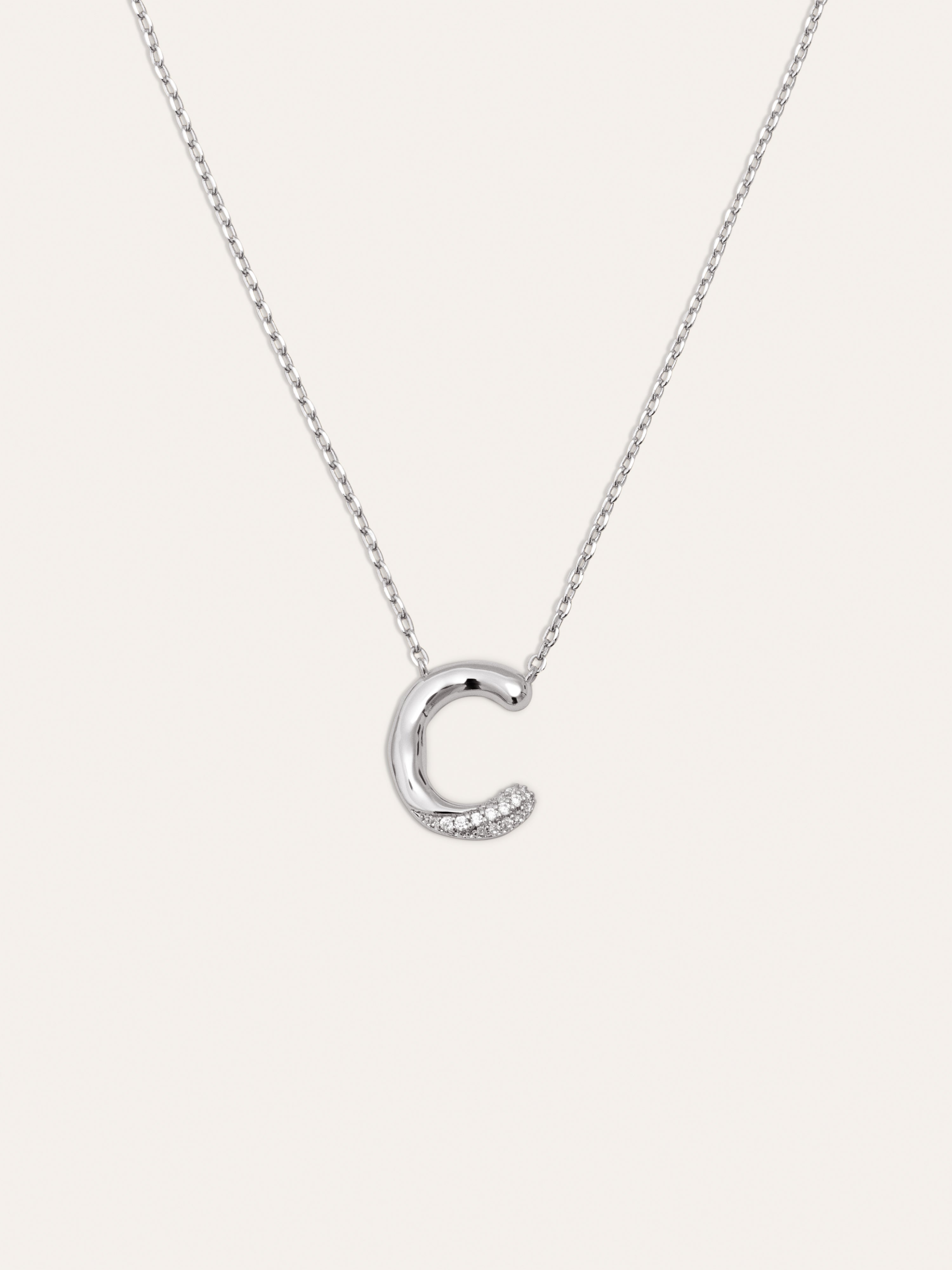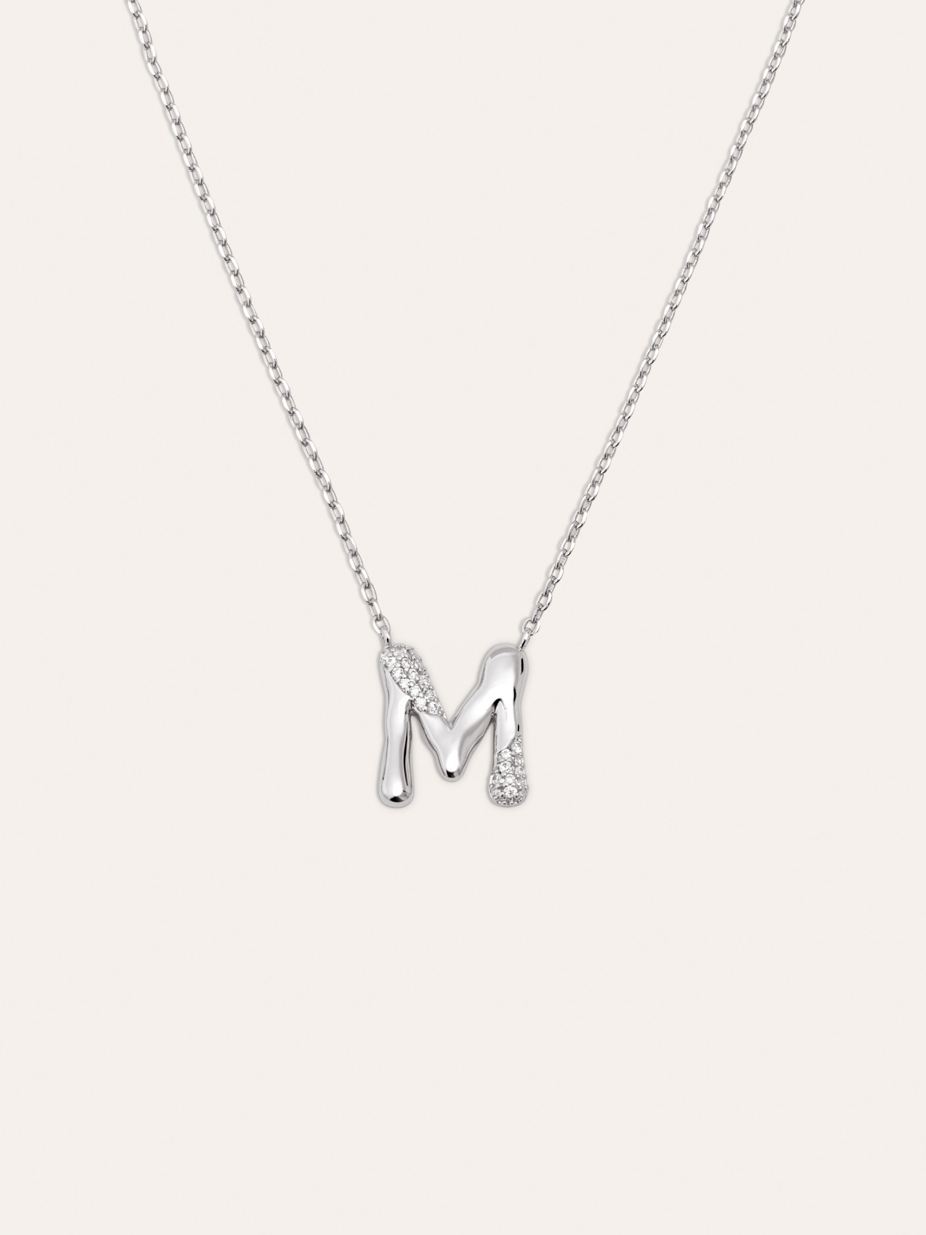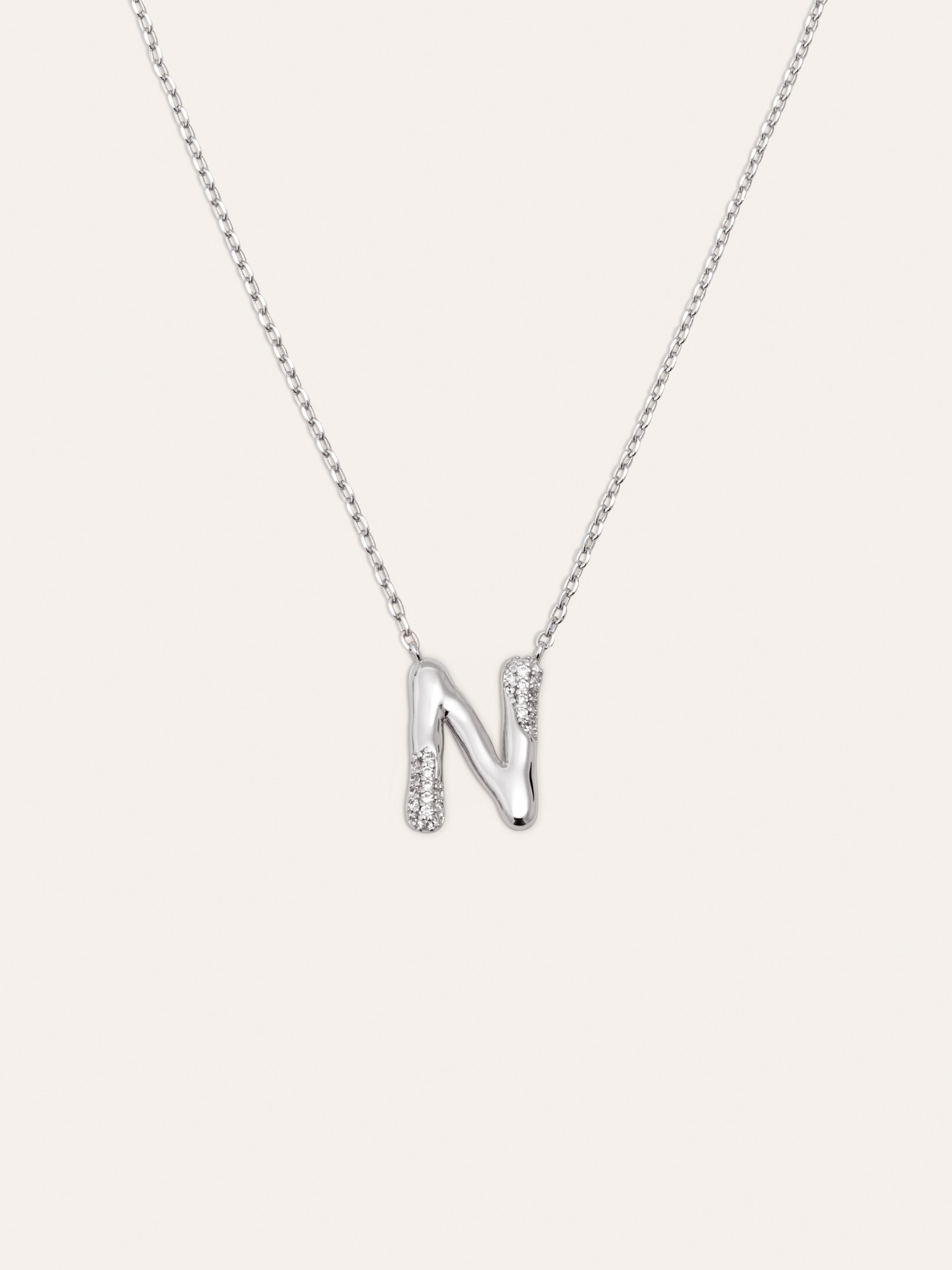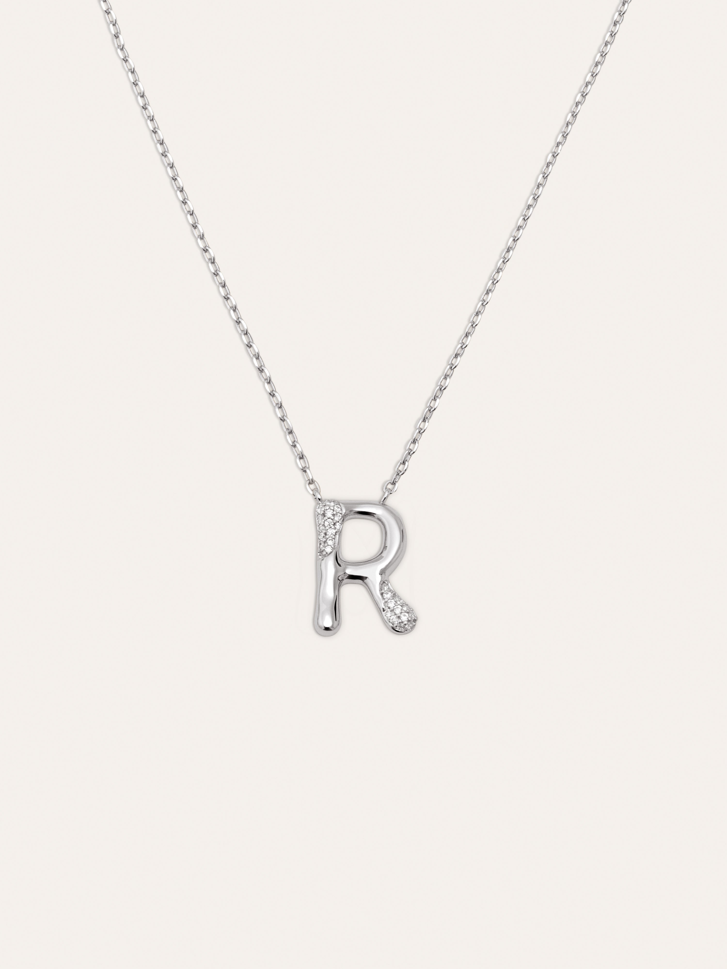El Collar Personalizado Letter Brillante es el colgante más especial. ✨ Una cadena con un charm con volumen y circonitas brillantes. Esta joya es perfecta para regalar a tu persona especial.
