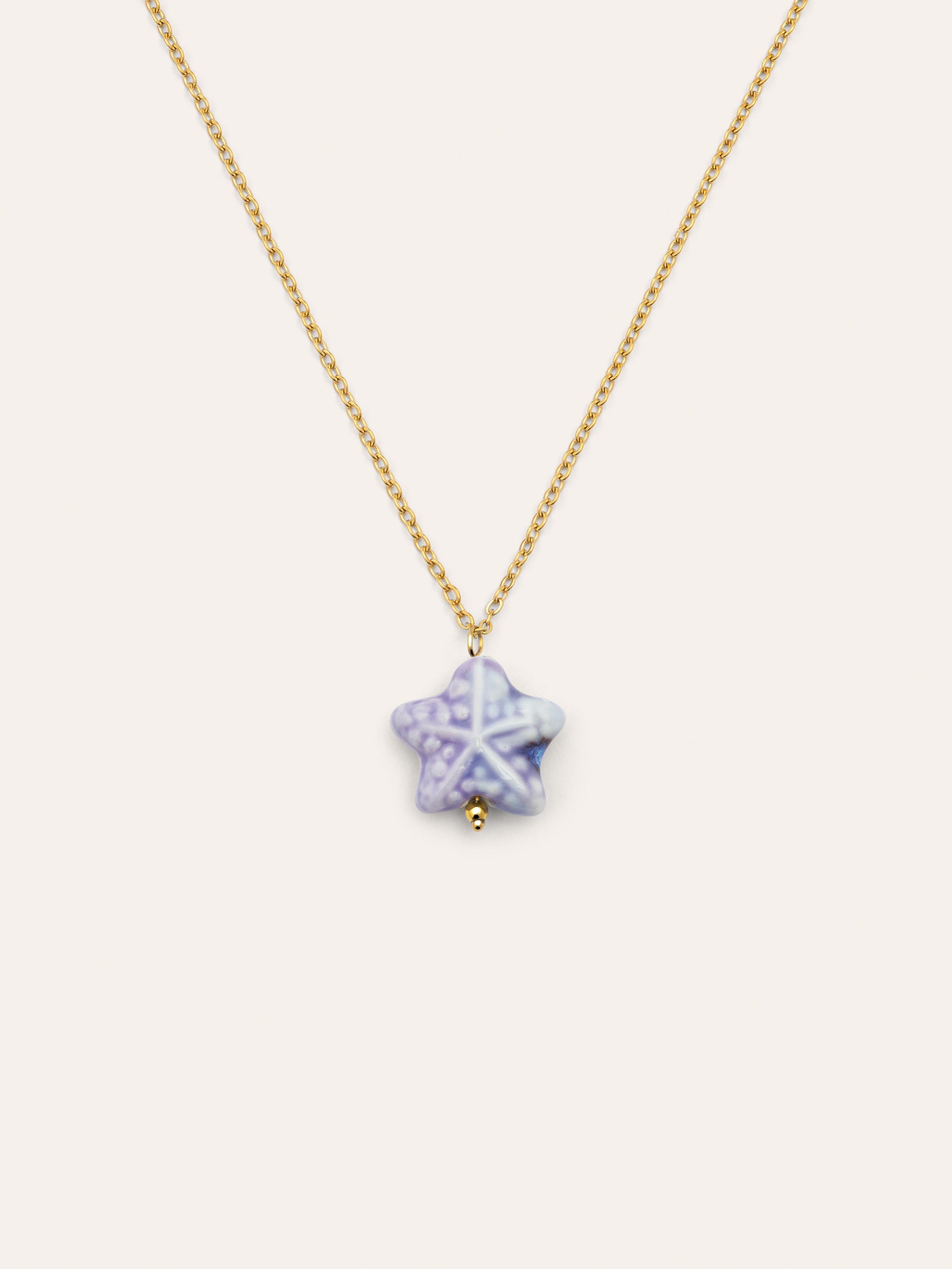 El Collar Starfish Blue de acero bañado en oro, es una cadena super mínimal con un charm de estrella en forma orgánica de color azul clarito. ⭐ Es perfecto para las amantes de las joyas resistentes al agua y el verano. 🩵