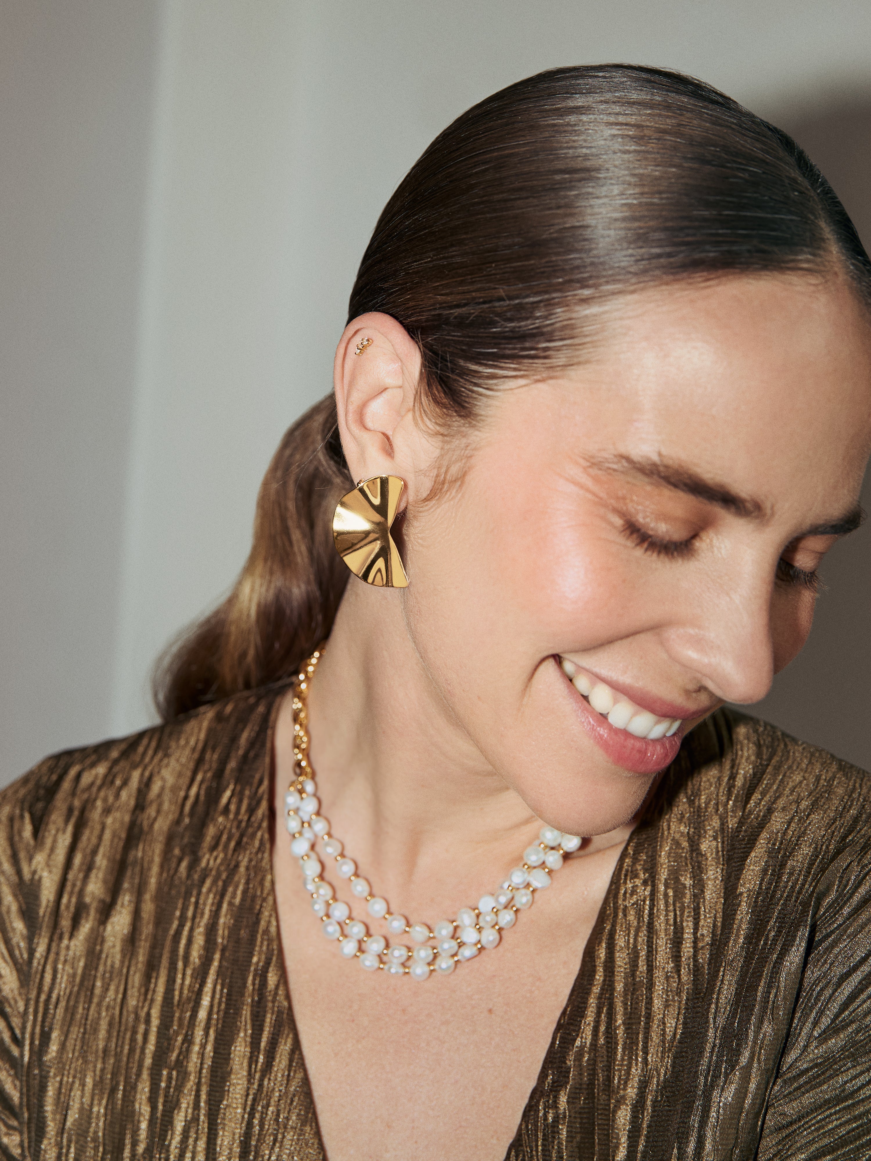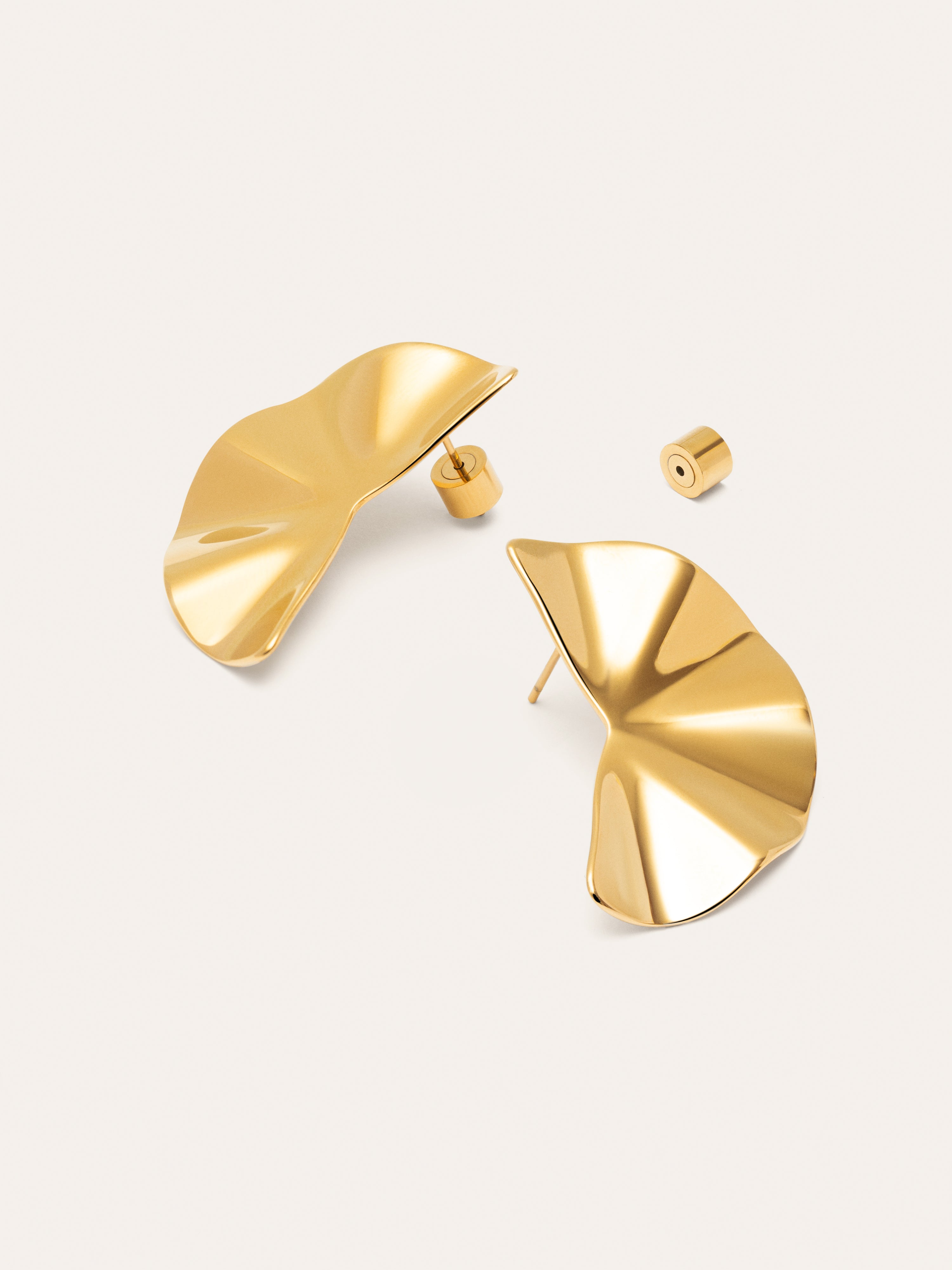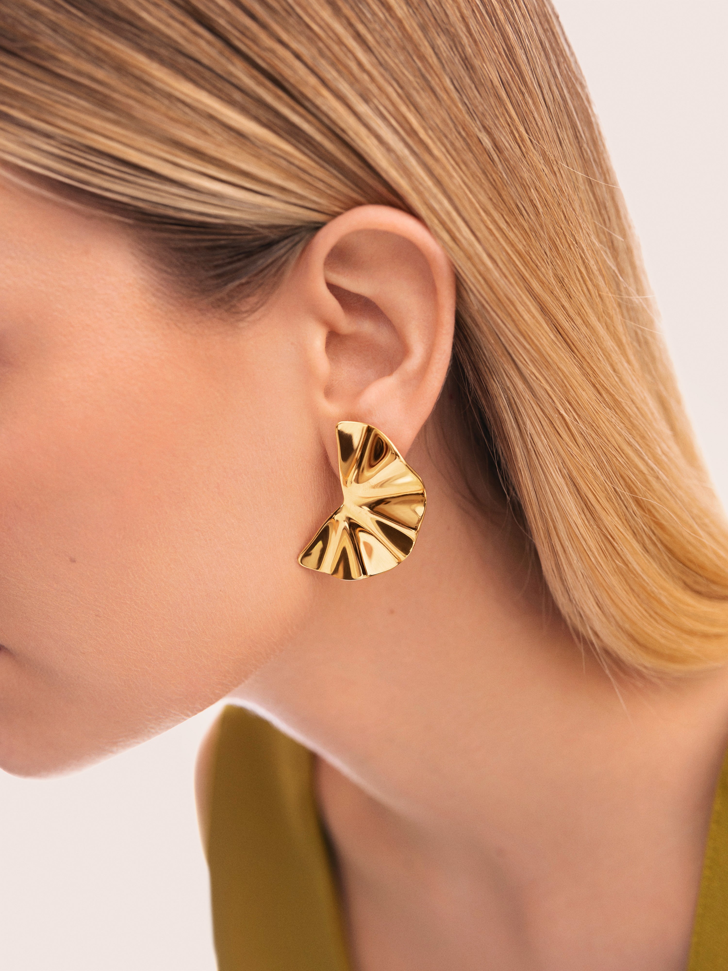 Los Pendientes Amara tienen un diseño geométrico con una forma semicircular y pliegues reflejantes que crean un efecto muy original. Su acabado brillante les da un aspecto sofisticado y moderno, ideal para las que quieren un accesorio llamativo y elegante para el próximo evento.✨