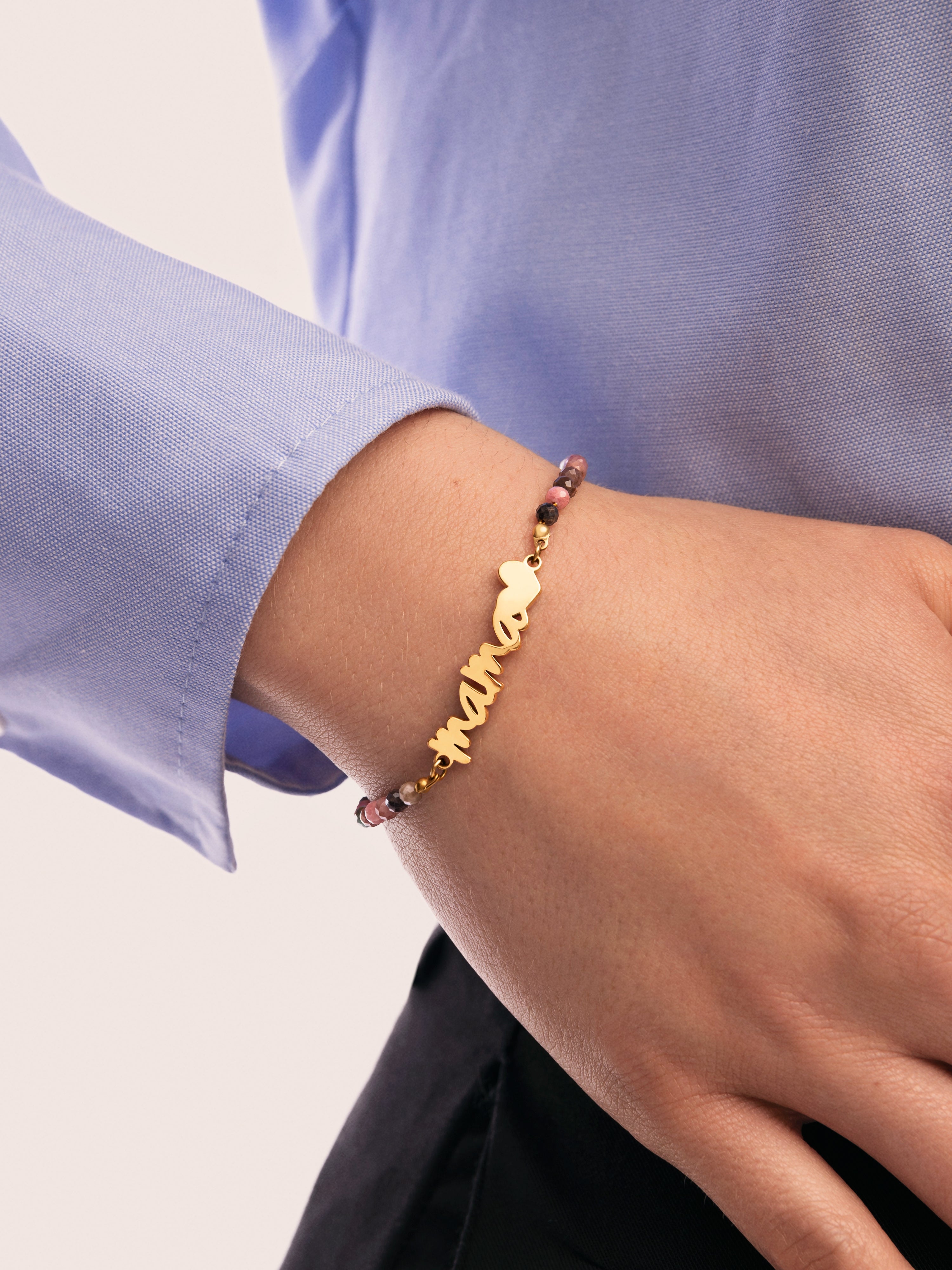 La pulsera Mamá Heart Tourmaline una pulsera con un diseño delicado y significativo. En el centro tiene la palabra más especial: mamá. Esta pulsera es perfecta para regalar. ✨