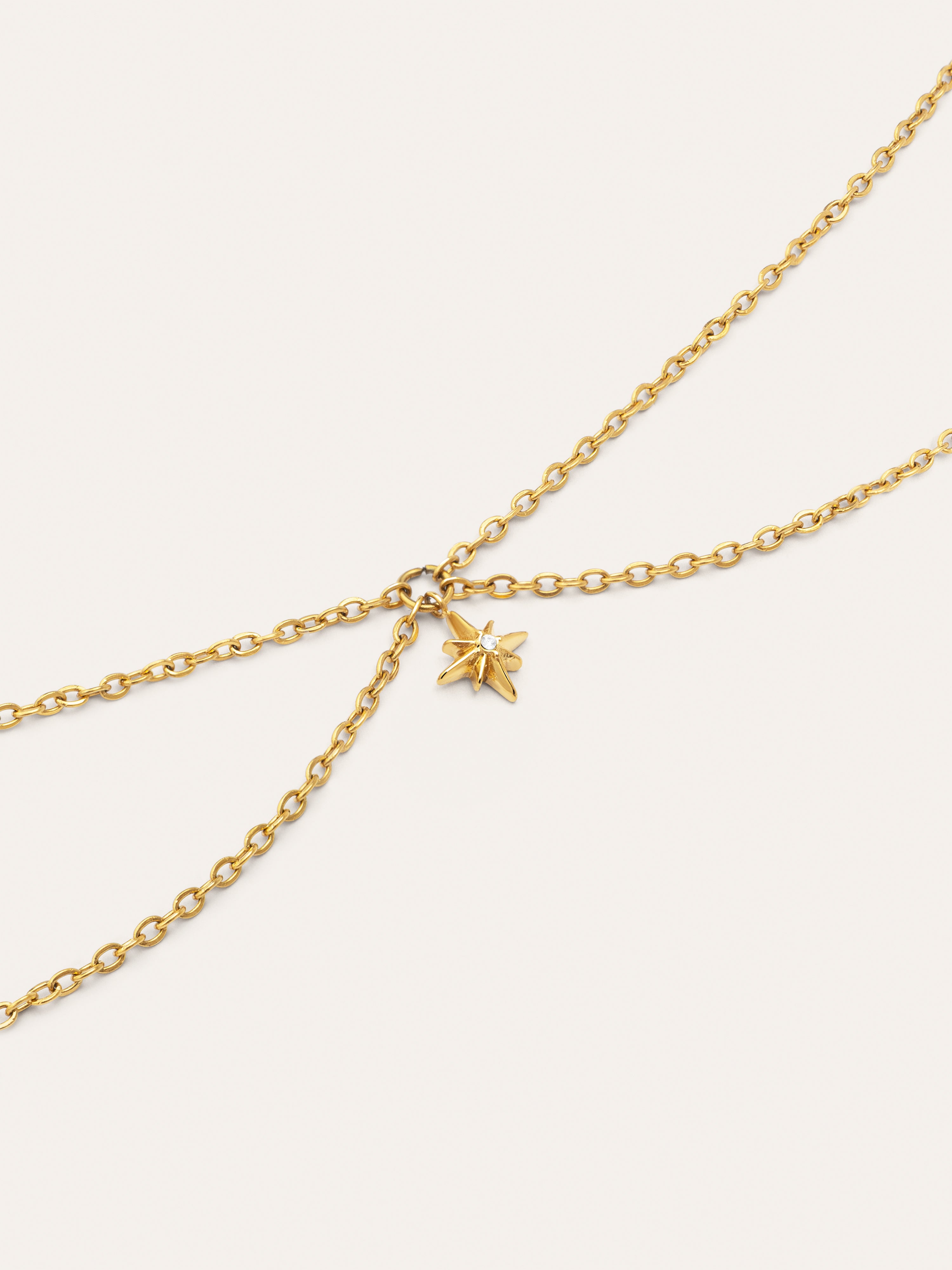 La Tobillera Boho Star es una pulsera de pie doble, con una estrella brillante en el centro. ✨ Para las amantes de las joyas boho chic, esta es vuestra tobillera. ⭐