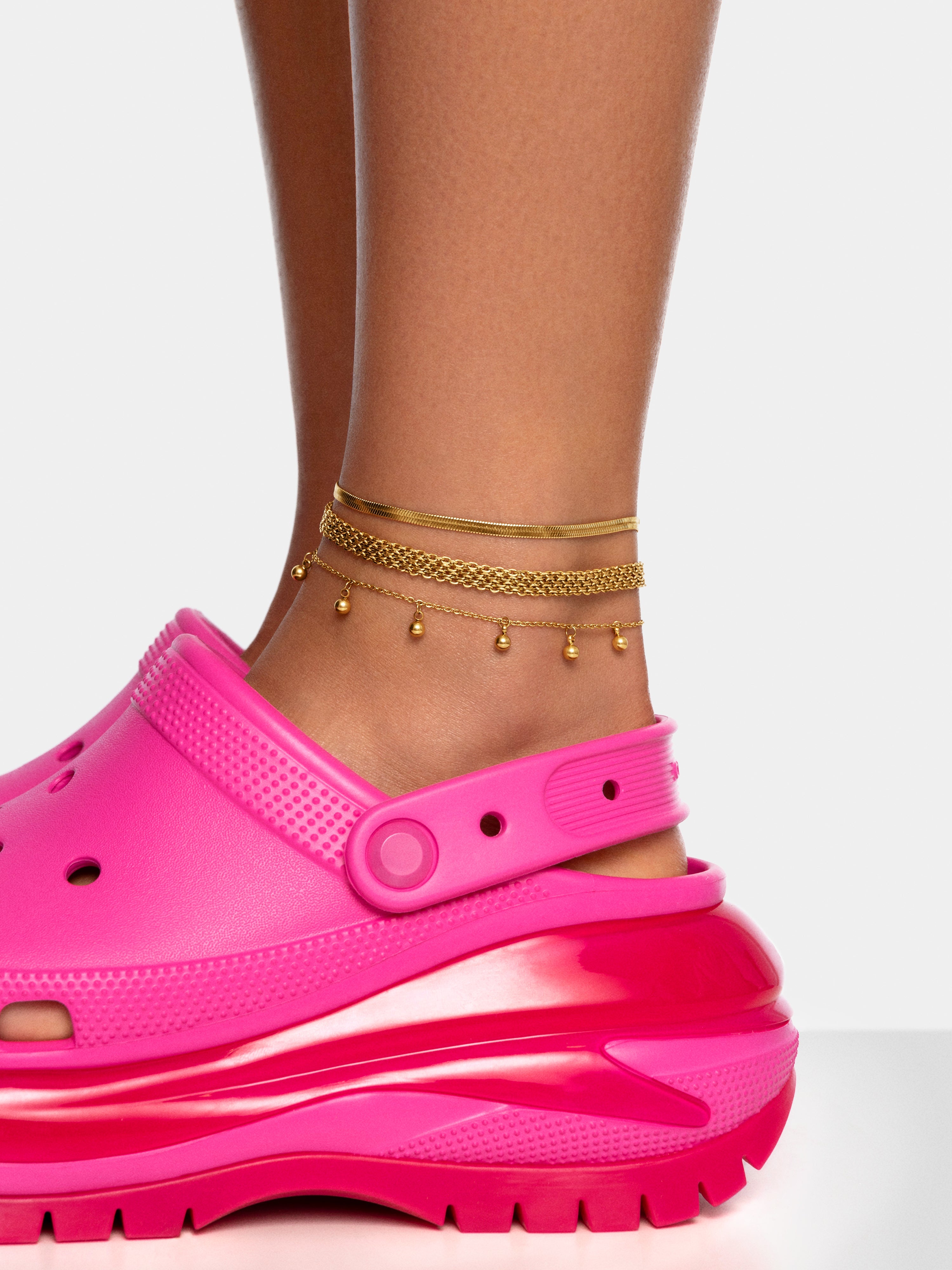 La Tobillera Lisse, de acero waterproof bañada en Oro de 18kt tiene forma de cadena de espiga, es perfecta para tu día a día. 💛 Una pulsera de pie resistente al agua perfecta para verano 🌊