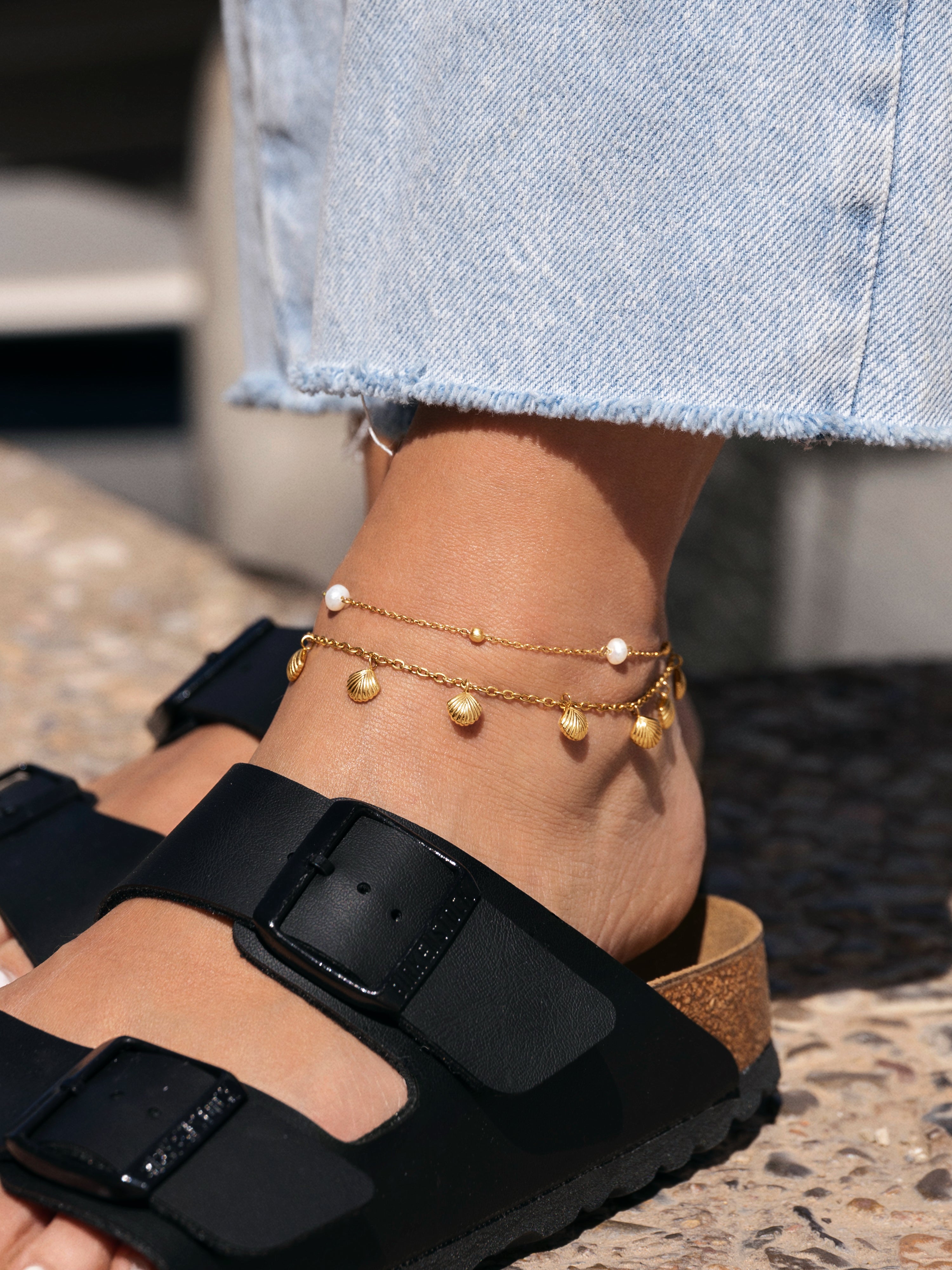 La Tobillera Swan bañada en oro lo tiene todo. 🤍 Su cadena fina combinada con unas perlas brillantes la convierten en una pulsera de pie fina y elegante. 🦢Tu joya de acero inoxidable resistente al agua, perfecta para verano 🌊